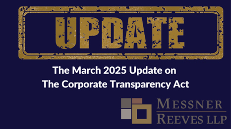 The CTA rules and BOI Reporting have been the subject of litigation and in flux for several months. Messner Reeves provides this update on the Corporate Transparency Act, which requires Beneficial Ownership Information (BOI) reporting.