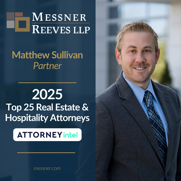 Messner Reeves LLP is proud to announce that Partner Matt Sullivan has been named among the Top 25 Real Estate and Hospitality Attorneys of 2025 by Attorney Intel.