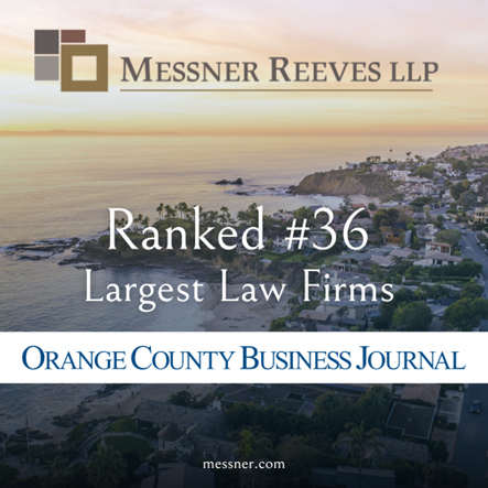 Messner Reeves LLP is honored to announce that the Orange County office has been ranked 36 in the Orange County Business Journal’s 2025 List of Law Firms. Firms are ranked annually based on the number of Orange County-based attorneys, not the number of attorneys nationwide.